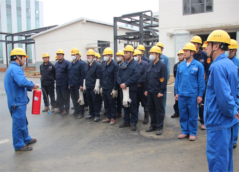 这是压型分厂正在举行的消防应急安全演练的现场。为了保证压型导热油煮油调试过程中突发意外事件时能得到及时有效地处理,增强员工防御火灾事故能力和自救能力,避免事态扩大造成人员伤亡及财产损失,眉山蓉光举行了以“安全发展防治结合”为主题的消防应急安全演练,压型分厂、石墨化分厂、安全环保部和保卫部员工代表参加演练。