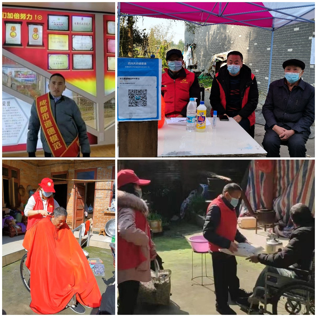四川好人、第三届成都市道德模范向阳主动到所在村社区申请当志愿者,参与疫情防控入户宣传,配合社区进行疫情监测,通过扫验健康码、行程码,测量体温,查验核酸检测证明等方式,确保守住福田村疫情防控“外防输入”的第一道关口。
