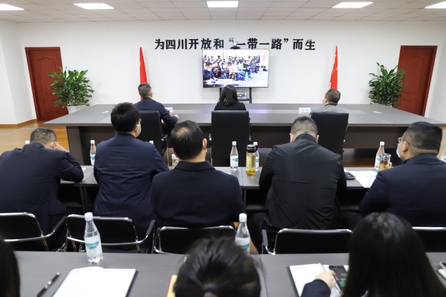 陆海云港公司党委书记、董事长、总经理黄翔谈到,陆海云港公司在星火中诞生、在烈火中锤炼,要深入贯彻落实习近平总书记来川视察重要指示精神和关于国有企业重要论述,抓住“一带一路”、长江经济带发展、新时代西部大开发、西部陆海新通道、成渝双城经济圈建设等时代机遇,迎着困难上、顶住压力拼、拿出韧劲干,切实做大做强物贸港、信息港,着力“把川货运出去、把资源引进来”。