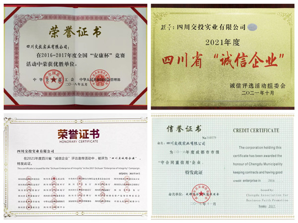 四川省“诚信企业”评选,是由四川省发展改革委、省委网信办、省国资委等25部门联合开展的活动。通过评选“诚信企业”1000家,加快打造“信用四川”品牌,全面展现四川企业风采,树立企业诚信典型,强化企业诚信管理,营造最佳投资环境和社会信用环境,提高企业知名度,培育四川省诚信企业品牌。经过初步审核、网络投票、专家评审等程序,蜀道实业公司脱颖而出,荣获四川省“诚信企业”称号。