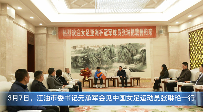 四川新闻网成都3月7日讯(陈默)今(7)日,四川省妇联公布了2021年度四川省三八红旗手标兵、三八红旗手、三八红旗集体名单,来自四川江油的中国女足队员张琳艳当选四川省三八红旗手。当天,江油市委书记元承军一行会见张琳艳,并受绵阳市委市政府主要领导和四川省妇联、绵阳市妇联委托,为张琳艳佩戴四川省三八红旗手绶带,颁发了四川省三八红旗手证书、奖章,鼓励她在绿茵场上再创佳绩,为祖国争光,为家乡添彩。