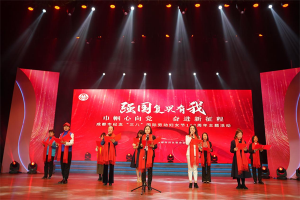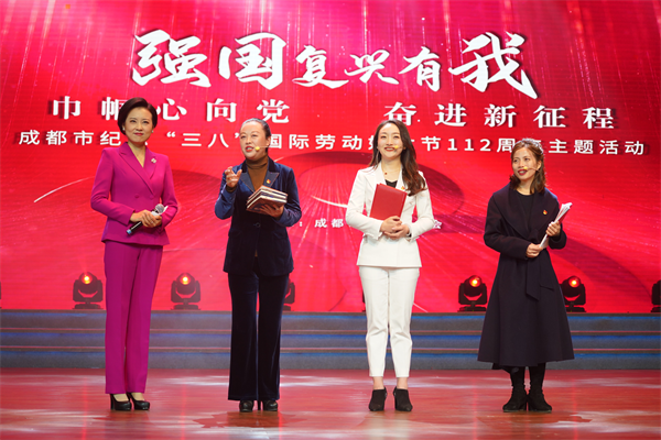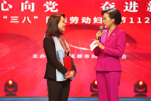 四川新闻网成都3月7日讯 为深入贯彻党的十九届六中全会精神,切实履行“举旗帜、聚民心、育新人、兴文化、展形象”的使命任务,团结带领全市妇女为建设践行新发展理念的公园城市示范区贡献“她力量”,成都市妇女联合会于3月7日举行了“强国复兴有我 巾帼心向党 奋进新征程”成都市纪念“三八”国际劳动妇女节112周年主题活动。活动邀请各个领域的蓉城优秀女性代表,以互动访谈为主要方式,交流她们在岗位上的工作经验与心得体会,展示蓉城女性践行初心使命的责任担当,砥砺前行心向党的昂扬精神。