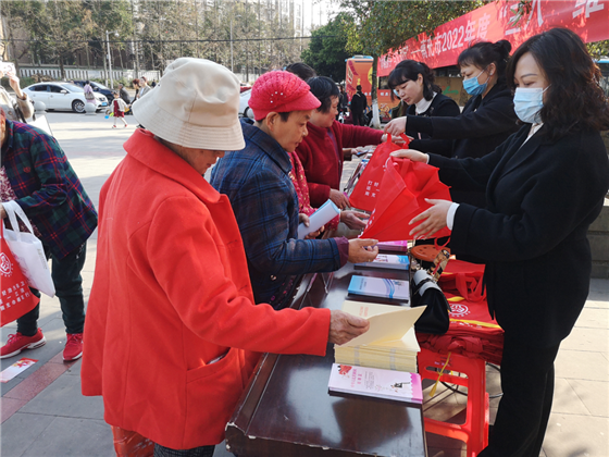 为深化“建设法治西充.巾帼在行动”活动,大力弘扬法治精神,提升群众法治意识,3月4日,西充县妇联在城北广场开展“三八”维权周活动。活动中吸引了广大妇女群众前来咨询,妇联工作人员一一解答,并发放了《反家庭暴力法》《未成年人保护法》《民法典》等宣传资料300多份。此次活动提高了广大妇女群众的法律意识和法治观念,增强了群众的维权意识和能力,使广大妇女群众了解到家庭暴力不再是家务事,为消除家庭暴力,创建平安家庭,构建和谐社会营造了良好的社会氛围。