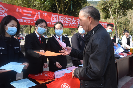 3月8日上午,市妇联、顺庆区妇联以“巾帼携手与法同行”为主题,联合顺庆区法院、检察院、政法委、公安局、司法局等单位在西山广场举行了“三八”维权周法治宣传教育活动。活动中,通过摆放宣传展板、发放宣传资料、悬挂横幅标语等多种形式,深入宣传《宪法》《民法典》《妇女权益保障法》《反家庭暴力法》《未成年人保护法》《预防未成年人犯罪法》《家庭教育促进法》等内容,进一步提升妇女群众法律意识和合理合法自我维权能力,引导广大妇女争做法治建设的宣传者、参与者、实践者。
