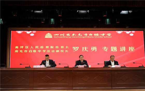 为深入开展未成年人保护工作,切实提高广大青少年的法律维权意识和自我保护意识,宣传新修订的《未成年人保护法》《预防未成年人犯罪法》及新颁布的《家庭教育促进法》,3月3日,高坪区妇联、区人民检察院走进白塔中学,推进落实“一号检察建议”,深入开展“法治进校园”活动,助推平安校园建设,区人民法院党组书记、检察长罗庆勇受聘该校法治副校长,为200余名教师开展普法讲座。