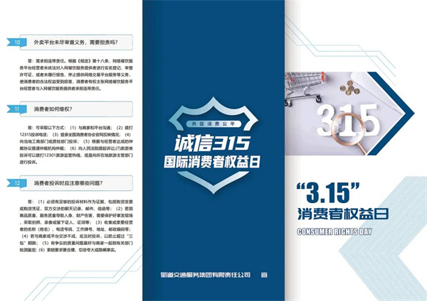 四川新闻网成都3月16日讯 在“3.15消费者权益日”来临之际,蜀道服务集团高度重视,精心组织,紧紧围绕“诚信为本,服务至上”这一主题,开展诚信宣传教育系列活动,取得了良好宣传效果。