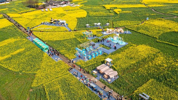 油菜花海和景区相连、与产业相融,辐射衍生出了“赏花经济”。龙黄“竹艺村”86户村民中就有20多户从事餐饮、民宿等与旅游相关的行业。周边农户也通过土地流转、再就业、商铺摊点承租等方式,使得人均年收益逐年增加。油菜花的这份美丽,造福了所有的村民。