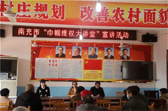 3月3日,南充市妇联“巾帼维权大讲堂”宣讲活动走进嘉陵区曲水镇胜兴村。南充市妇联法律顾问通过以案释法,宣传《民法典》相关知识。