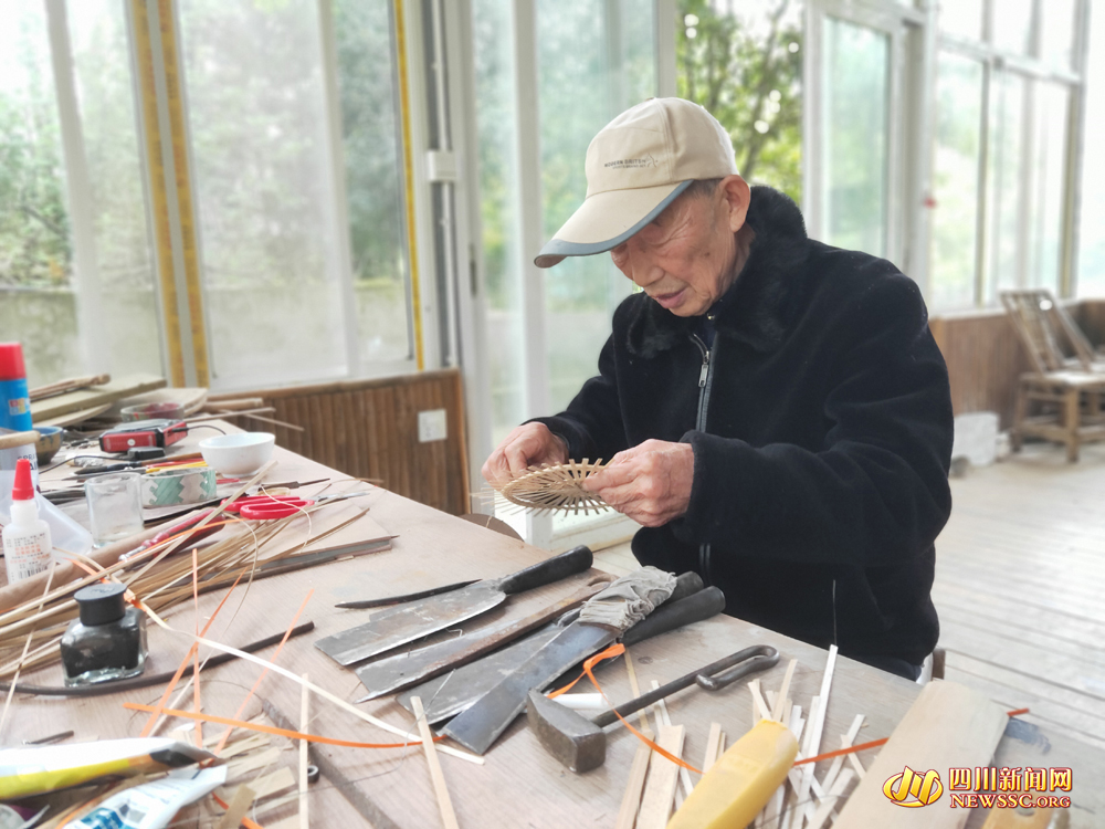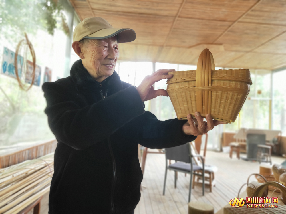 四川新闻网成都4月1日讯 在崇州市道明镇竹艺村,有一家农家院叫“竹艺苑”,每天,87岁高龄的省级竹编传承人赵思进大师都要到自己的私人工坊里坐坐,看看珍藏的作品,摸摸陪伴了自己大半辈子的老伙计——篾条和竹编工具们,有时候,徒弟来请教竹编中遇到的难题,耳聪目明的老人还能给与准确有效的指导。
