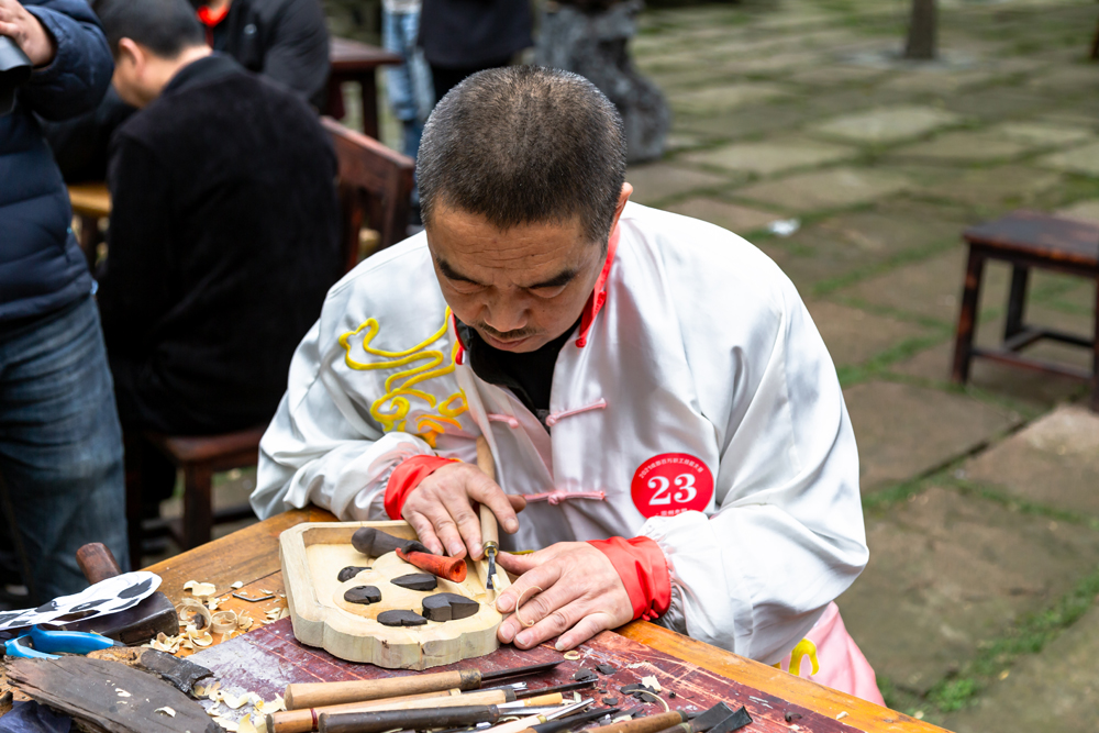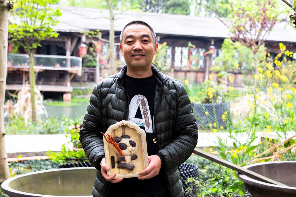 来自成都崇州廖家镇的木艺非遗传承人陈勃麟师傅,也用自己精湛的木雕技艺,制作出木艺“蓉宝”,表达着自己对成都大运会的热切期盼。用木雕成就梦想的他,希望世界各地的友人来成都成就梦想。