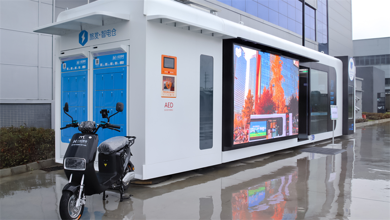 活动现场,川开电气新能源微网系统、梯次电池储充系统、华体科技能源补给站等一些智慧设施引发大家高度关注,其中一款由四川旅发环保科技有限公司展出的智慧驿站脱颖而出,成为全场焦点,聚焦了现场领导及参会人员的目光。
