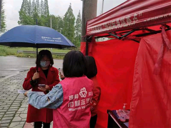 面对疫情的新情况、新挑战,崇州市各级妇联主动出击,严格按照疫情防控要求,号召妇女干部和巾帼志愿者积极参与到疫情防控中来,切实发挥宣传员、践行员和战斗员作用,在从小区住宅到村庄街道,从公共场所到高速路口,每一个抗疫角落总能见到她们的身影。