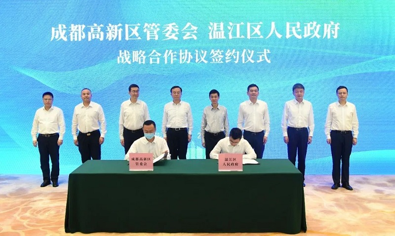成都高新区和温江区地缘相邻、人文相亲、产业相通。温江作为全市生物医药产业的主要承载地之一,在全国率先提出“三医融合”发展理念,专注深耕大健康产业十四年,与成都高新区共同承担着做强创新药、高端医疗器械重点产业链的发展使命。此次签署战略合作协议是共同推动成都担当全省发展极核、共建区域协同创新体系的一项重大举措,标志两地开启了共绘高质量协同发展蓝图的崭新开端,将推动双方在城市新区辐射能级的新跃升和中心城区发展动能的再增强上相互赋能、彼此成就。