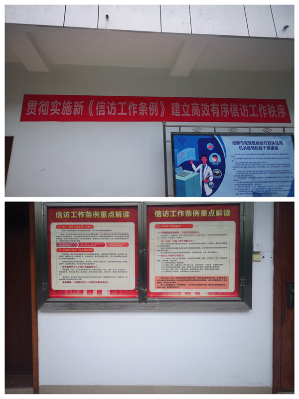 四川新闻网成都5月25日讯 信访工作是党的群众工作的重要组成部分,是送上门的群众工作。5月1日颁布施行的《信访工作条例》将信访工作全面导入规范化法治化制度化轨道,为做好新时代信访工作提供了基本遵循。按照双流区信访局部署,双流区综合执法局通过悬挂横幅、制作展板、发放宣传资料、机关内部集中学习、现场解答等方式,在全局掀起了学习宣传贯彻条例的热潮。