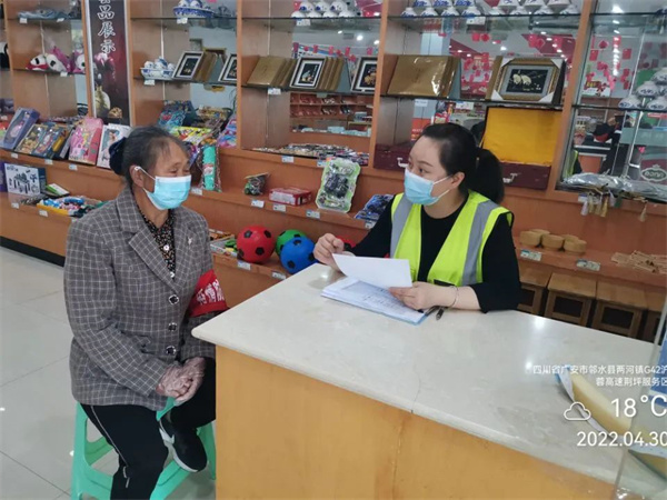 “您好,请佩戴口罩,出示行程卡、健康码,谢谢您的配合!”这样的提示语,蜀道服务区公司荆坪服务区现场管理员唐云邻每天都要说上千次。连日来,协助查码测温、组织经营区域环境消杀、做好员工自查自测、处理防疫岗各类突发情况……每天从早到晚,她一直忙碌在现场、坚守在岗位。