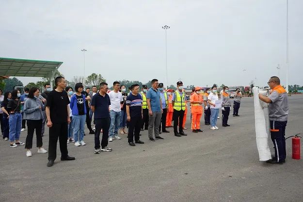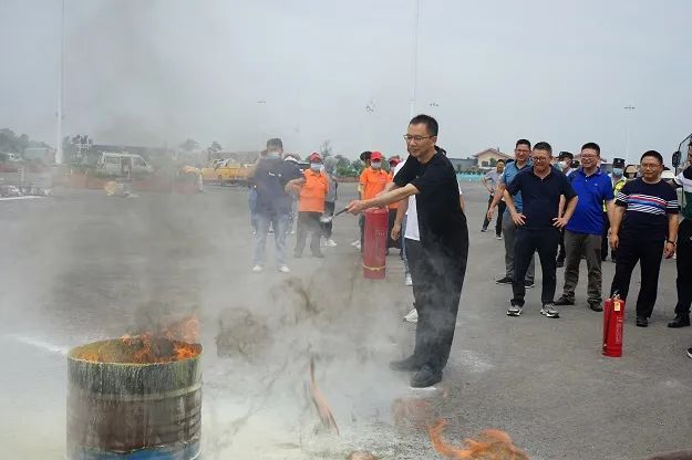 演练正式开始,随着火盆的燃起,加油站站长现场演示灭火器、灭火毯等消防器材的正确使用方法。随后,各参训人员依次通过使用灭火器、灭火毯等实践演练,掌握消防器材使用方法,提升在紧急情况下自救自护能力。
