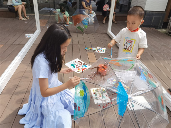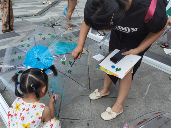 当天的伞具作画、迷宫作画环节,来自成都市营门口小学的学生们在专业绘画老师的指导下,调色,构思,充分发挥着自己的想象力和绘画技巧,在家长们的协助下一笔一划勾勒出自己的画作,绘制出一幅幅独具创意的作品。