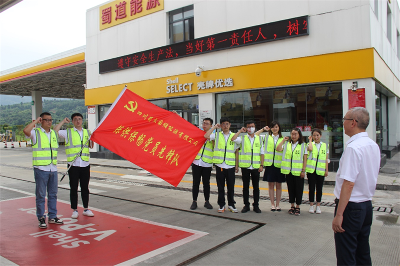 四川新闻网成都7月14日讯 在中国共产党101岁生日之际,为深入打造“红心蜀道驿”党建品牌,喜迎二十大的胜利召开,蜀交国储公司党支部组织本部党员、团员、统战人员及一线全体党员,赴金堂服务区加油站开展了“共创蜀道驿 喜迎二十大”主题党日活动。