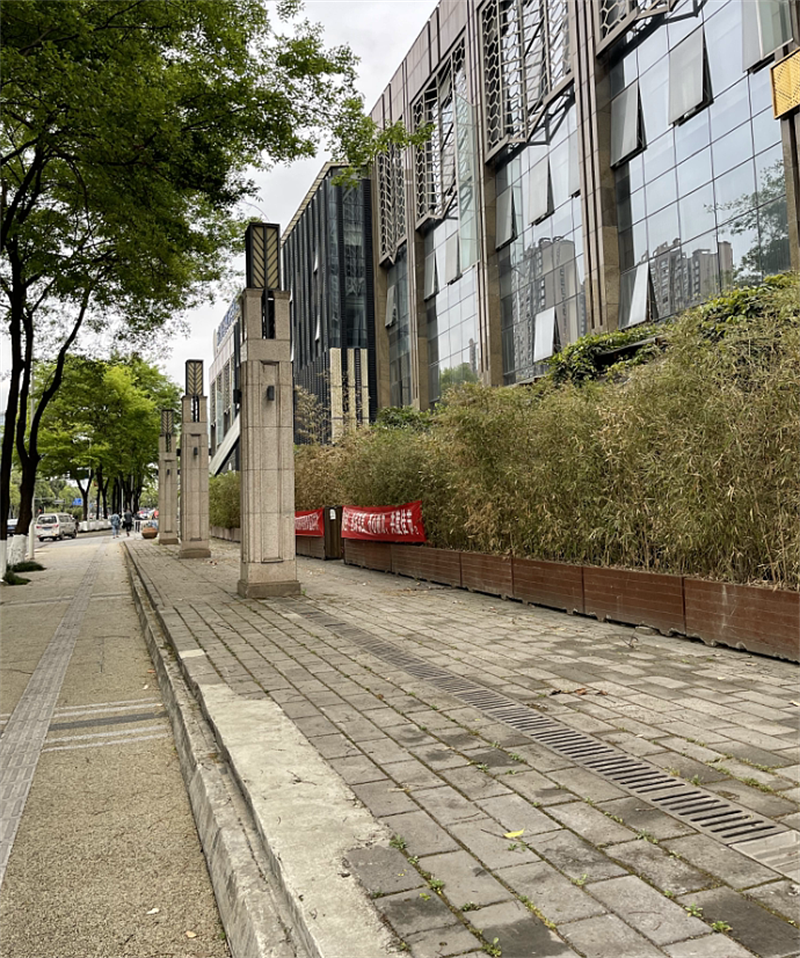 该场地呈现为矩形,长约47.7米,宽约13米,总体面积约为620平方米。改造前,该处人行道铺装较为老旧,绿植衰败,不仅影响行人通行,也影响城市环境整体形象。