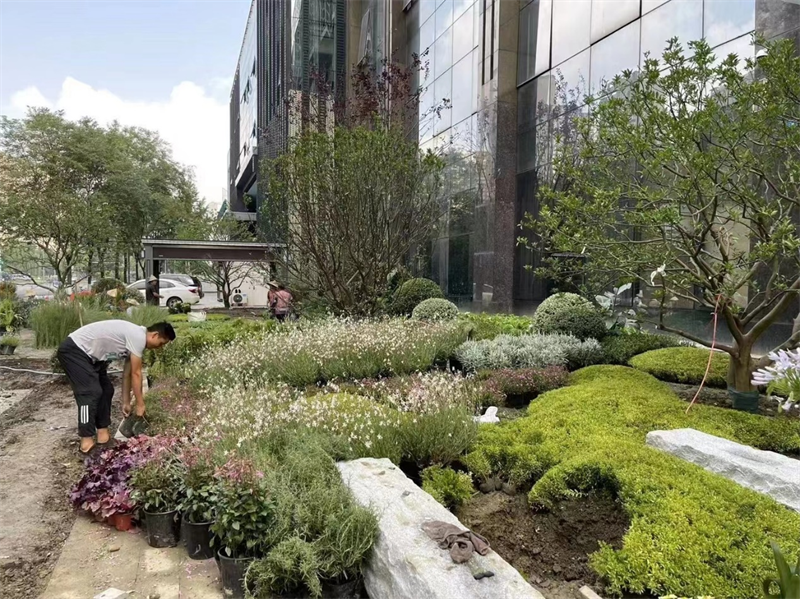 上海园林(集团)有限公司按照“景观化、景区化、可进入、可参与”原则,以满足群众休闲漫步、赏花观景、畅谈交流、通行休憩等需求,兼顾企业私密性和花园高级感为主旨精心设计,改造后的“街头花园”将花园与街区视线界面完全释放。