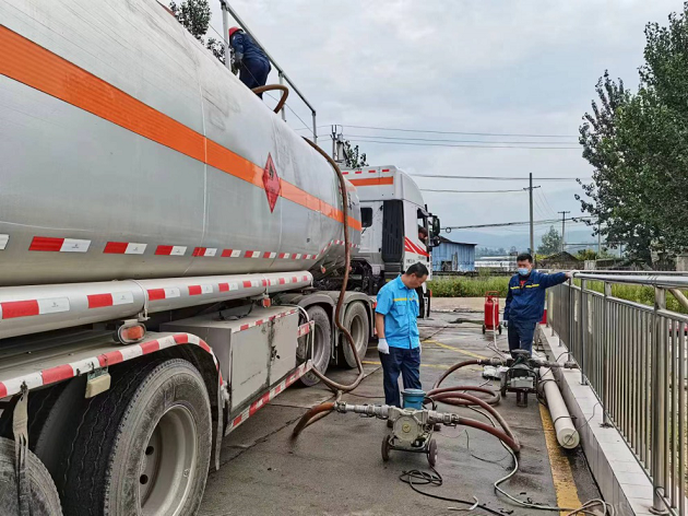 为了验证这个想法,游翔随即找来油桶放在地面,将扫舱泵出油口管线放置在油桶中,再次启动扫仓泵,“哗啦”一声,一大股油倾泻而出!听着这“哗啦哗啦”的声响,游翔既高兴又失落:“总算抽出来了,但油品总不能一直存在油桶中,怎样才能简单快捷进入油罐车呢?”看着不远处的备用扫仓泵,游翔琢磨着:“把两台泵串联在一起抽,能行吗?”说干就干,他把第一台泵的出口接入第二台泵的入口,第二台泵的出口接入油罐车。再次启动,经过两台扫仓泵,油品不断地流入罐车。两台扫仓泵串联,让每个油罐多抽出100多升油品,大大降低转油作业的油品亏损。