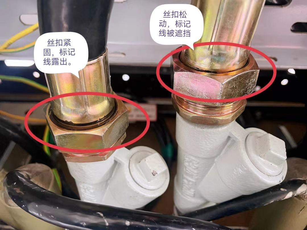 广巴高速旺苍加油站,站长雷丽娟给设备部件连接丝扣做标记、画上圈,当设备松动,标记的线圈就会被遮挡,巡检中就可以一目了然地发现松动问题,极大提升工作效率。