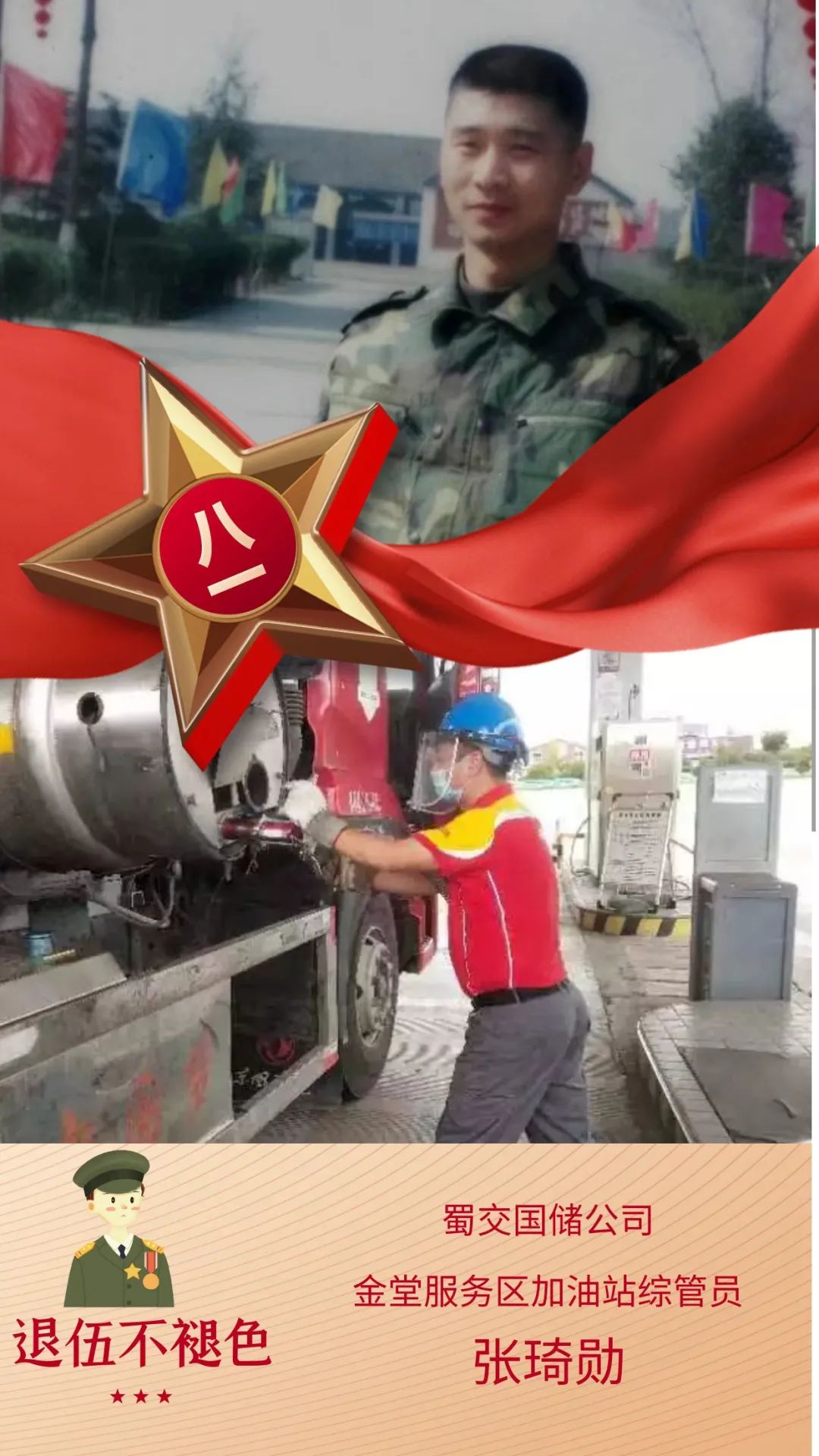 张琦勋,一名军龄2年的退伍老兵,军装在身时,他是百折不挠的人民子弟兵;退伍回归后,他又成为了能源行业内的排头兵。新能源行业作为新兴行业,知识点多,涉猎面广,张琦勋自学请教等多方式结合,悉心钻研,潜心学习,业务技能从生疏到熟练,他逐渐成长为新能源行业里可以独当一面的一名“精兵强将”。他有着严格执行公司规章制度的组织纪律,有着注重保障综合能源站生产经营安全的思想意识,也有着令行禁止、雷厉风行的工作作风。虽脱下军装,但他用那脱不下的军人担当为金堂服务区综合能源站的安全运行奠定牢固基石。