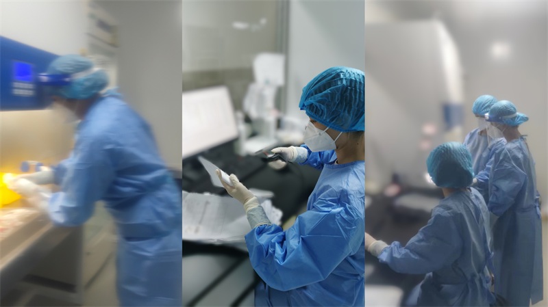 同样双向奔赴的,还有医学检验科外出支援的的赵坤、杨非和坚守在科室里的同事们。赵坤和杨非7月17日出发前去支援,中途也遇到过身体不适的时候。“当前大家都累、大家都辛苦,所以我和杨非更要加油!”赵坤说。