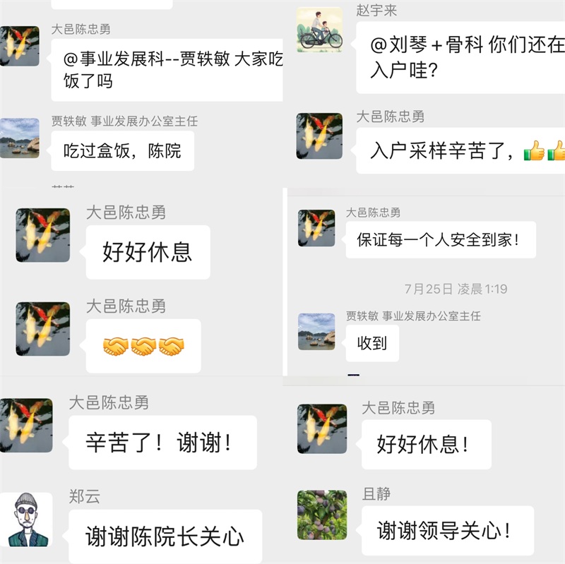 “每次工作群里面只要一有动静,不管白天晚上、不管几点钟、不管什么事,领导都会第一时间回复,大家心里面满满的归属感,工作起来更有劲。”前去支援的医务人员说。