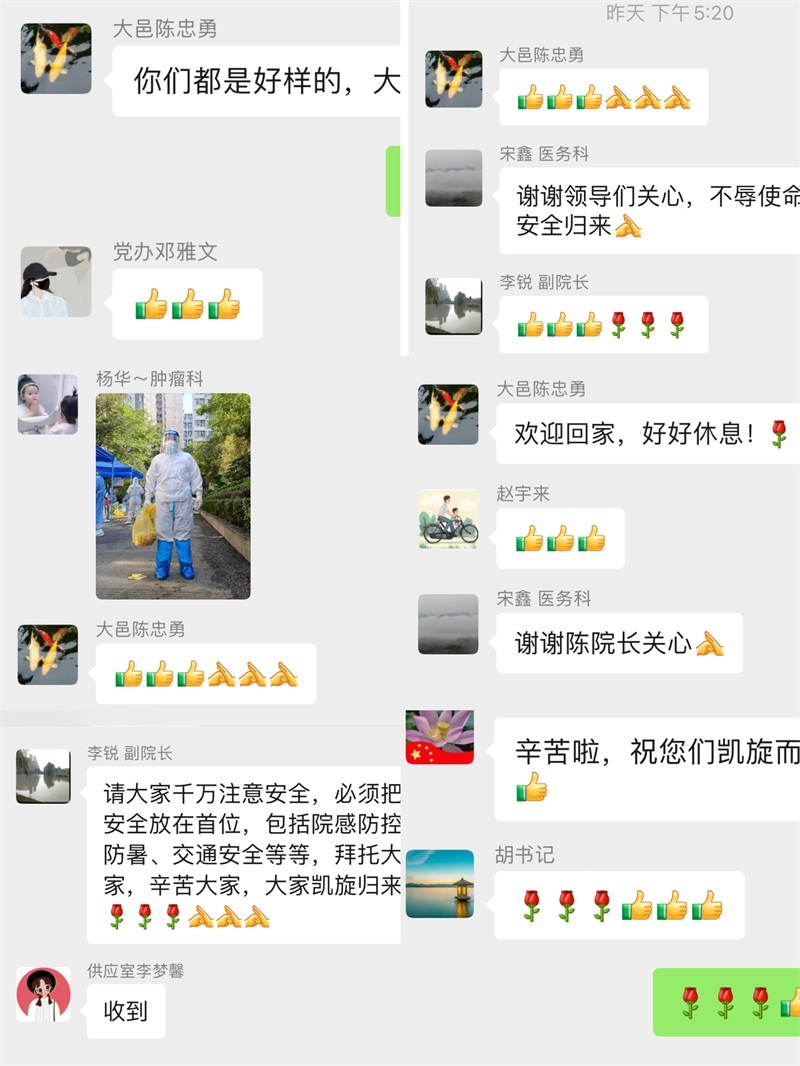 截至目前,医院外出支援的大部分医务人员已经顺利完成任务安全返回。
