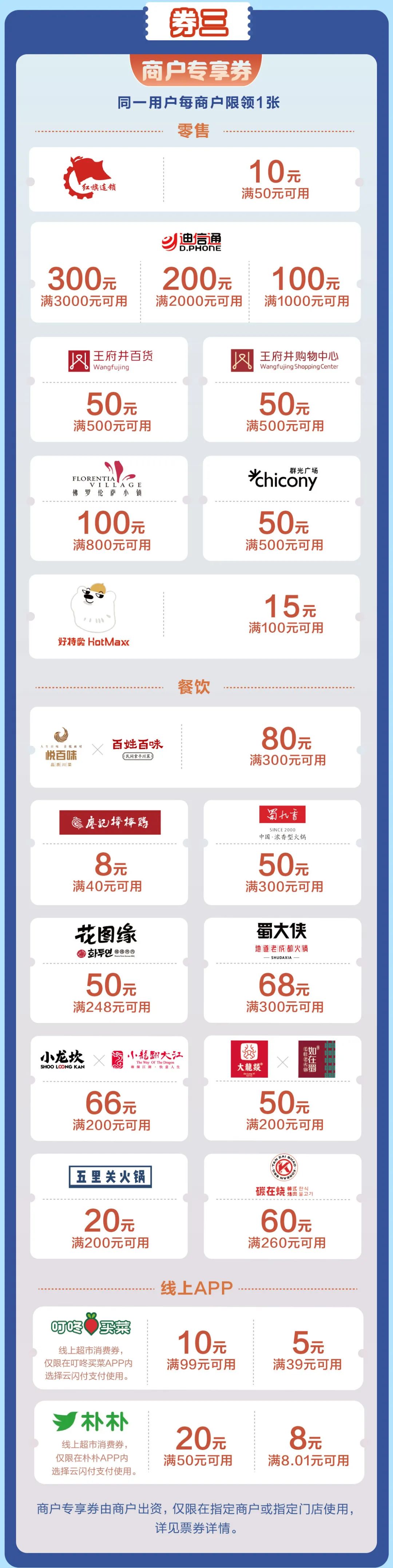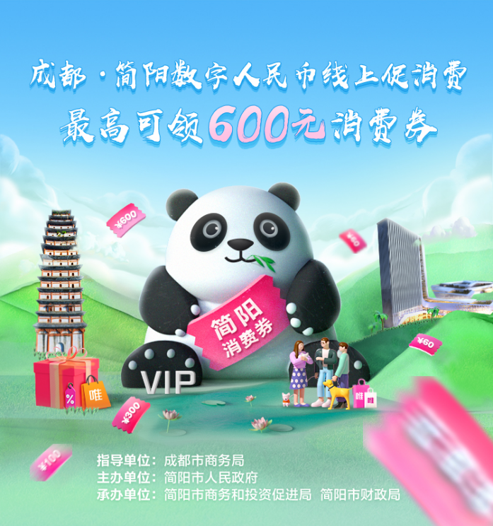 同期,8月15日上午10点整,简阳市政府还将联手唯品会开展“相约简阳·唯品惠民”数字人民币促消费活动,派发千万数字人民币消费券,普惠性、行业针对性兼具的区(市)县主题消费券正陆续上线。也就是说,8月15日有两波消费券可以抢!