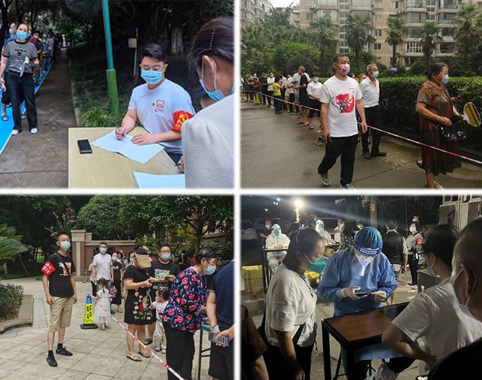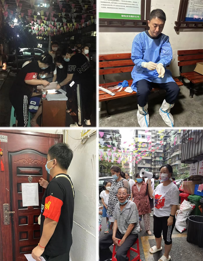 公司志愿者们社区报到、融入一线后,都以共产党员第一身份冲锋在前,积极服从社区安排协助开展核酸检测、关口值守、宣传防疫知识、填写出入卡、物资保障及运输等志愿服务工作,并形成了领导干部带头冲,干部职工跟着上的冲锋态势。公司支部书记邓小松先后参与小区关口值守、核酸扫码信息采集等工作,为居民讲解普及防疫政策和知识,提高公众安全防护意识;党支部副书记熊杰、支部委员陈春华在核酸检测现场维持秩序,并帮助老年人、残障人士调试健康码;支部委员甯尧光更是换上防护服和面罩,直接参与核酸检测工作。入党积极分子陈超患有腰肌劳损,但仍坚持在物业中心伏案工作4小时,填写小区出入卡1380张,直至凌晨2点才结束工作。入党积极分子何博配合社区工作人员,一起上门统计小区人员情况、健康状况。公司员工王丽协助小区工作人员开展出入卡核对发放工作等等……这一个个身影是蜀道传媒公司抗击疫情党员志愿队的缩影,他们以实际行动践行共产党员的初心与使命,用奉献精神担负起国企社会责任。