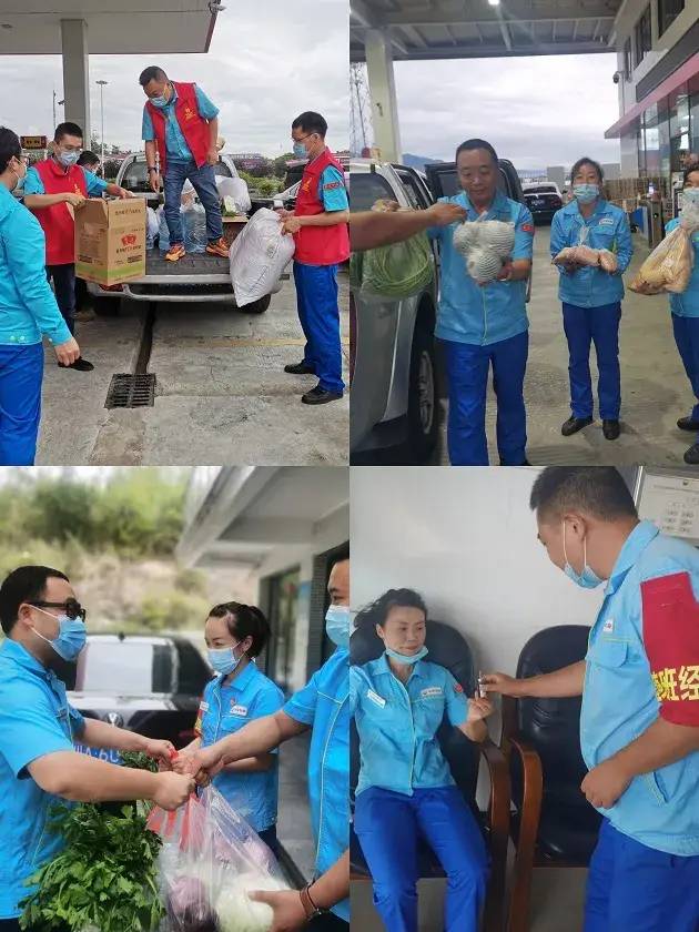 守土尽责,尖兵突击。各党支部发挥战斗堡垒作用,共组建9支党员志愿服务队,火速深入生产经营第一线,突出尖兵作用奋战疫情。本部第三党支部组建“安全保障服务队”,7名成员在居家情况下不分昼夜收集统计疫情信息,并通过远程视频机器人扫站检查防疫措施落实情况,为公司防疫工作查漏补缺。川东片区党支部组建“党员服务突击队”,在邻水服务区、荆坪服务区边界加油站点驻扎生根、靠前指挥。川中片区党支部13名党员在3小时内集结到位,全部下站帮扶一线,并组建“后勤保障服务队”,在南充管控升级的情况下组织力量从广元集中采购物资,全力保障加油站物资供应。