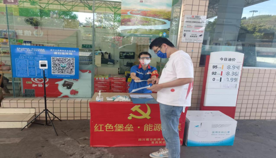 公司成南高速加油站往来车辆来自四面八方,车流量大、人员流动性强,疫情防控工作紧、任务重。关键时候,“红色堡垒、能源先锋”党员先锋队挺身而出,他们有担当、守初心,主动利用平时休息时间到现场开展防疫工作,站到抗“疫”第一线,树立起党员冲锋在前的鲜红旗帜。