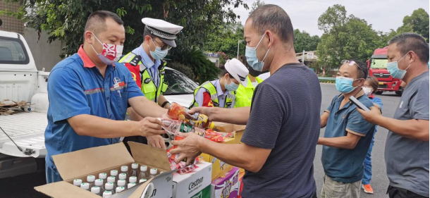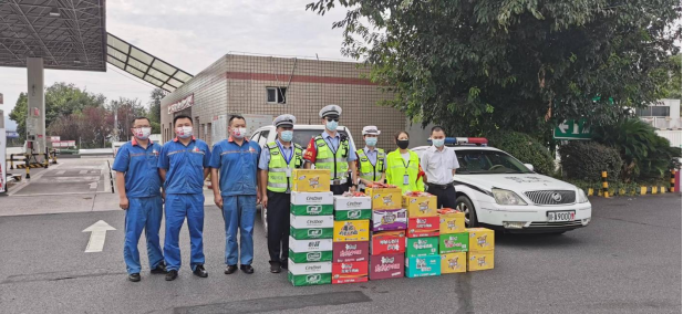 因成都市疫情封控的影响,滞留在淮口服务区的大货车车辆越来越多,货车司机的生活也受到了极大的影响。得知情况后,蜀交能源公司淮口加油站积极发挥党员先锋队带头模范作用,在加油站、服务区建立联动机制,一起联系属地防疫部门到服务区,为加油站员工和滞留货车司机做核酸检测。同时,联动高速公安二大队、成南公司服务区等属地单位开展了“困车不困情”送温暖活动,为被滞留客户提供了“防疫温馨包”和生活必需品等物资,切实让货车司机感受到温暖。