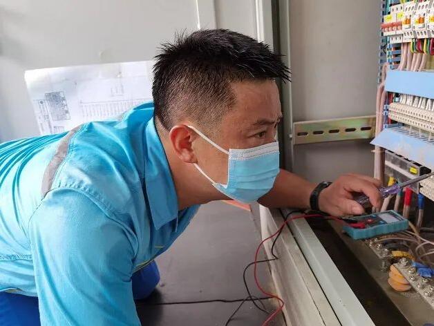 8月26日,疫情肆虐、高温不断,和平加油站因气温过高配电柜起火线路烧断。张东接到消息后立马赶到加油站,当时气温42度,在配电室狭小的操作空间内,他俯身在配电柜下,一根一根线路的排查通断问题,烧焦的电线味道充斥着房间,豆大的汗滴挂满了额头也打湿了口罩,他却腾不出手来擦拭。