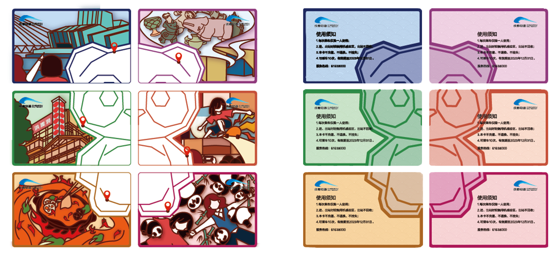 “我们设计的这套票卡以‘熊猫’为主视觉元素,围绕轨道交通引领城市发展的创作理念,融入成渝两地的标志特色,展现了新时代成渝青年的青春与朝气,彰显了轨道交通特色文化和巴蜀文化。”《成都—重庆 双城一路》创作团队负责人安率旗谈道,“未来,我们还将一如既往地创作更多的设计作品,为成渝地区全面建设双城经济圈做出青年一代的贡献”。