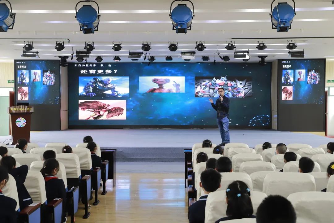 科幻的世界是如此奇妙与辽阔。首先,何明瀚老师用孩子们最感兴趣的一些外星人物形象开启了同学们的科幻之旅,向孩子们介绍了人形生物和异形生物,并引导大家思考科幻作品中的一些不合理之处。何明瀚的分享也让孩子们明白了,科幻作品的创作虽然可以任由天马行空的想象,但是真正能震撼人心的想象是根植于真实的想象力的发挥,需要具备一定的科学知识、人文精神、逻辑能力和发散思维。