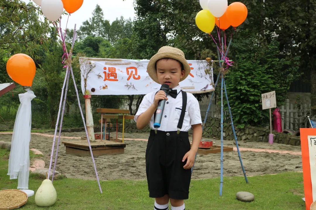 大四班李宸宇小朋友作为幼儿代表发言“丰年不忘饥苦,富岁当思节约”。
