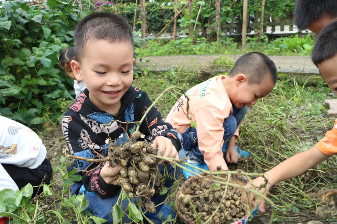 丰收的气息溢满了整个田园花语,大三班的孩子们回归田园,尽享丰收的喜悦......一张张如花般的笑脸,意味着硕果累累,收获劳动成果的自豪。