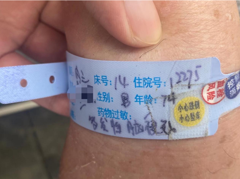 老人一身居家装扮,睡裤凉鞋,手上还带着入院手环,老人患有脑部疾病,说话也不大利索。经过一阵交流,发现原来老人是想去街对面吃碗面,中途不慎滑倒,由于年迈体弱,半天没爬起来。