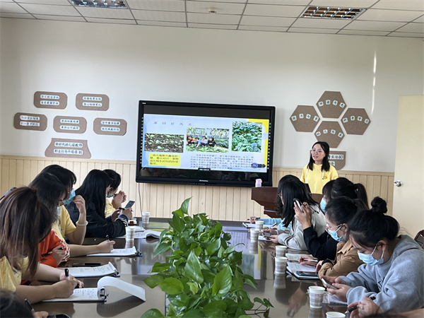 展示课后,杨雪名师工作室成员、新都区机关幼儿园骨干教师熊仕蓉带来了案例分享《体验式生命课程实践案例—我们的萝卜地》。熊仕蓉从幼儿已有经验、主题资源分析、主题活动开展及实践的生成与反思四个方面进行了重点分享。在分享过程中,她结合了大量鲜活的照片及视频,生动形象地展示了小班幼儿与班级萝卜地的互动过程。在萝卜的播种、生长、收获的各个阶段因为有了幼儿的加入,萝卜地成为了幼儿心爱的游戏伙伴、好奇的探究对象、钟情的体验场所,促进了幼儿经验的建构与生长。在场教师纷纷表示,“熊老师在课程实践中能积极放手,将主动权交给幼儿,不断追随幼儿兴趣,去探究、生发课程故事,值得我们学习与借鉴。”