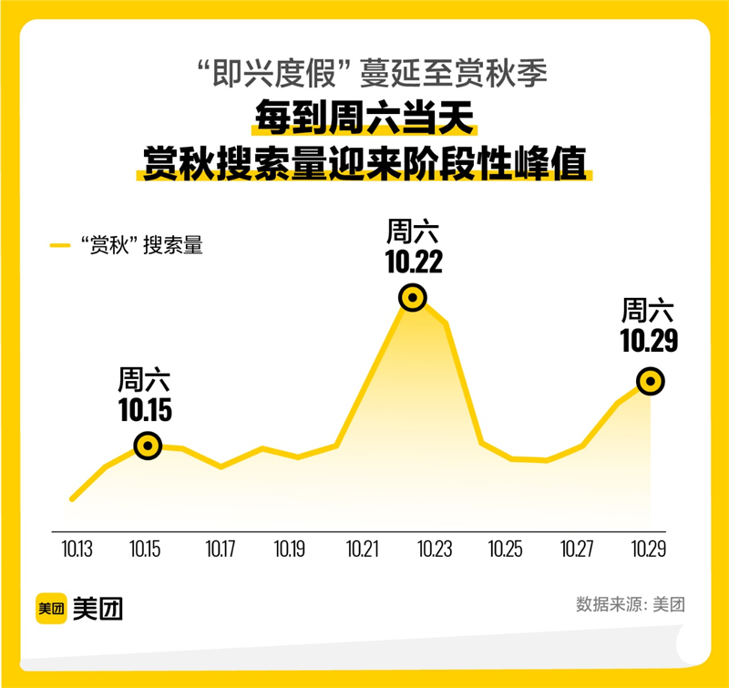 ▲“即兴度假”蔓延至赏秋季,周六“赏秋”搜索量迎峰值