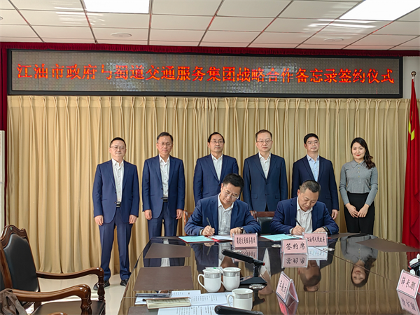 蜀道交通服务集团党委副书记、副董事长、总经理王良文与江油市委常委、副市长薛长灏代表双方签署战略合作备忘录。