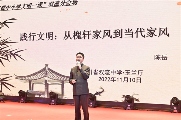 11月10日,在四川省双流中学玉兰厅,灯光渐暗,天府学堂·2022成都市中小学主题教育之“文明一课”双流分会场正式拉开帷幕。开场篇章以“剧情+朗诵+对话+场景”的创新形式,让现场观众接受了一场传统文化的洗礼。