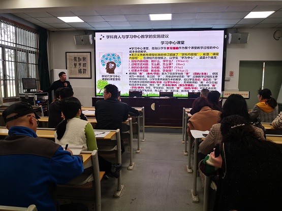 首先,副校长王代兵做了“学科育人与学习中心教学的实施建议”的报告。他强调学习中心中的“学习”是指学生能动、独立的学习,因为只有能动、独立自主的学习才可能是内化的、建构性的、发展性的学习,也才是我们今天所要追求的学生学习的状态。学习中心课堂观察从学习行为的针对性、学习行为的能动性、学习行为的多样性、学习行为的选择性等四个维度为理解与评估学生的个性化学习提供了一种分析框架与系列工具。
