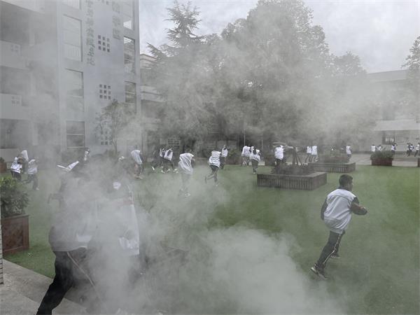 上午9点25分,校园内拉响警报,演练工作人员燃起演练用烟饼,全校师生迅速作出反应,上课教师带领学生捂住口鼻,沿着学校指定楼梯口快递有序撤离到学校操场的安全地带,随即各班主任清点人数,总用时两分余钟,全体教职工和学生全部安全疏散完毕。
