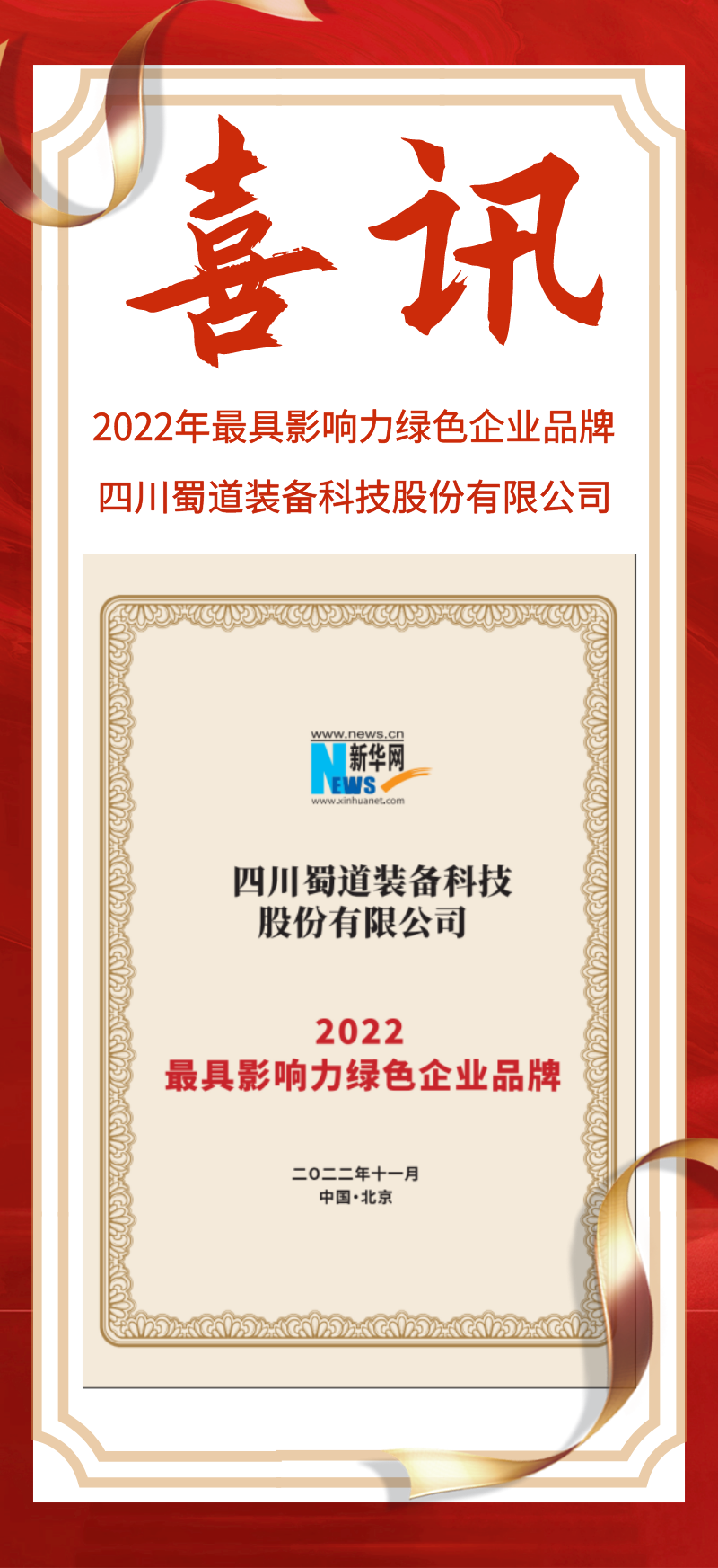 蜀道装备将以此次获评“2022最具影响力绿色企业品牌”为契机,继续乘势而上、接续奋斗,持续推动技术创新,精研现代绿色高端制造主业,服务绿色工业,服务绿色交通,争当交通运输业绿色转型排头兵,着力打响“绿色蜀道”品牌,聚力绘就四川省属国企绿色低碳循环发展的宏伟蓝图。(斯建华 吴金霞)