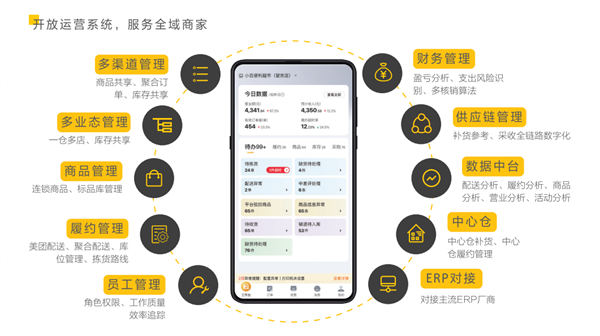 目前,牵牛花系统已经实现“一套系统覆盖全渠道”,“订、采、销”及“仓、拣、配”全链路打通,更精准进行库存管理,打通美团配送和聚合配送,为商家提供最优配送方案,全面提升经营效率。
