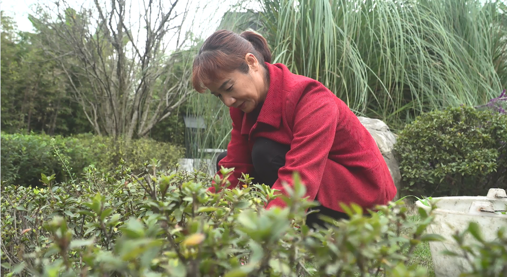 岷江村村民苏桂珍笑呵呵的说:“我现在每天的工作就是锄草、打药,修建枝丫这些,还比较轻松,因为离家近下班了还可以接孙儿。在家门口,每个月就能挣到三四千块钱,我肯定开心呀。”